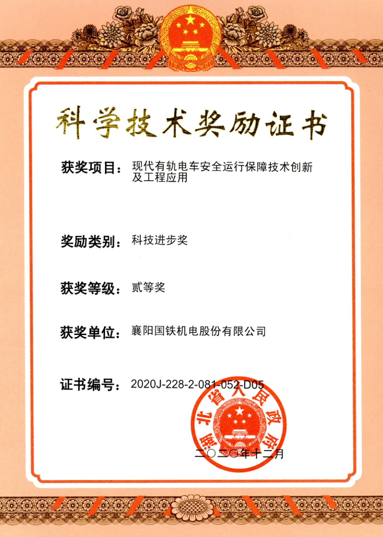 湖北省科技進步二等獎 現(xiàn)代有軌電車安全運行保障技術(shù)創(chuàng)新及工程應(yīng)用