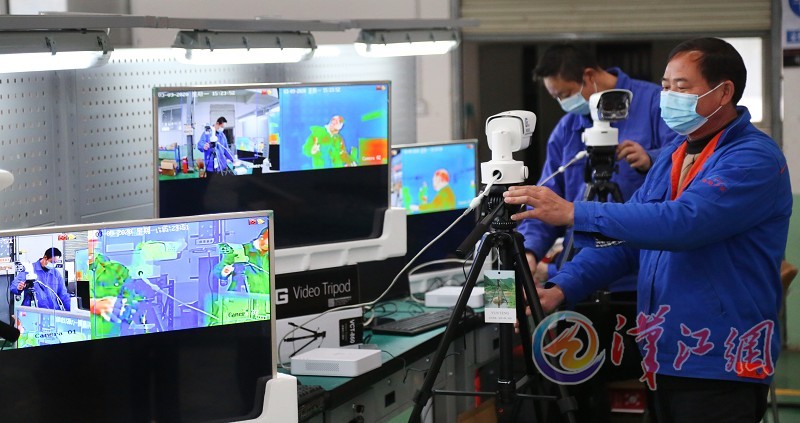 3月9日,在襄陽國鐵機(jī)電股份有限公司,工作人員正在調(diào)試熱成像快速測(cè)溫系統(tǒng)。本公司2月23日成功研發(fā)了熱成像快速測(cè)溫系統(tǒng),該系統(tǒng)可實(shí)現(xiàn)對(duì)進(jìn)出人員體溫檢測(cè)、人臉識(shí)別、實(shí)名制驗(yàn)證和考勤管理,可同時(shí)對(duì)30-50人進(jìn)行體溫快速檢測(cè)、篩查、報(bào)警。在疫情防控期間,本公司一天能夠生產(chǎn)30多臺(tái)設(shè)備,目前用于全市的疫情防控指揮部門、部分醫(yī)院及復(fù)工復(fù)產(chǎn)的企業(yè),下一步將投入到學(xué)校。